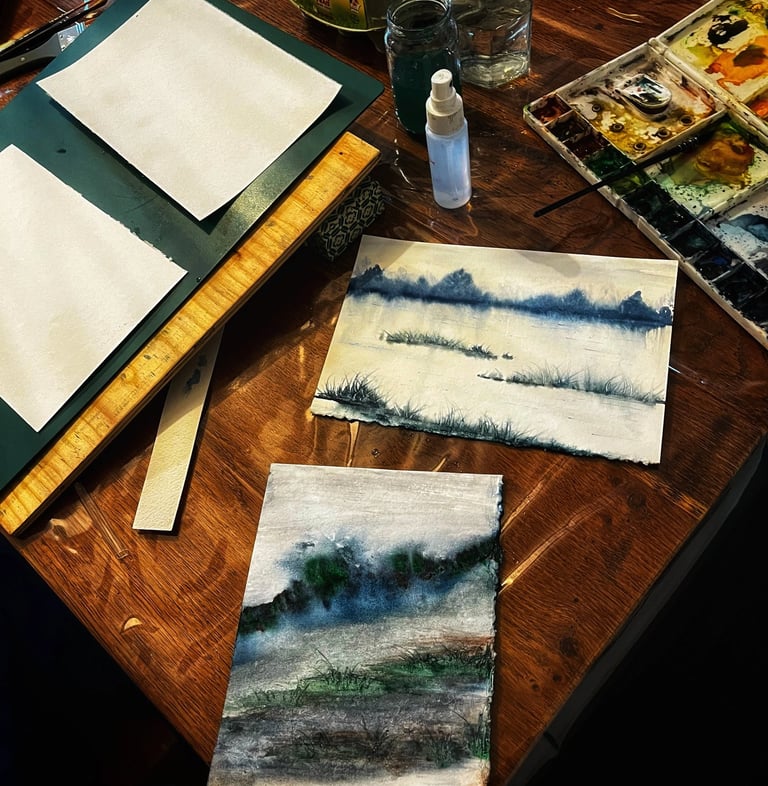 Personnellement, j'encourage la pratique de l'aquarelle peu importe le matériel posé sur la table de travail. Pour aider ceux qui travaillent sur cellulose, je leur montre des astuces pour mieux gérer le temps de séchage et je leur apprends à préparer leurs mélanges de pigments en amont pour réduire l'impact des défauts du papier.